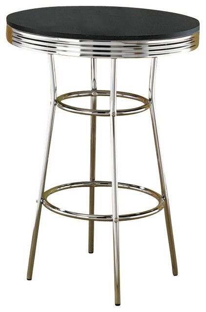 The Bar height table is sold individually with FREE shipping direct to you! The bar height table is finished in black & chrome.