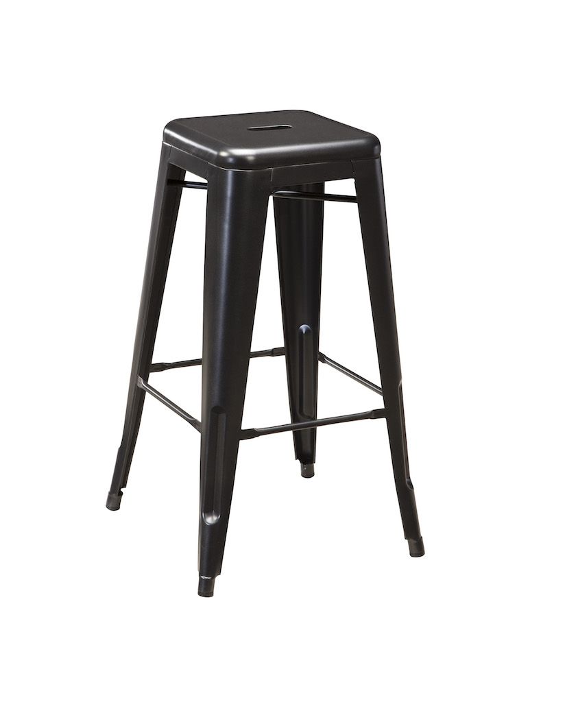 Industrial Casual style stools are made from stamped sheet metal in a retro design with tubular X and stretcher bracing and a convenient handhold cut-out in the seat. 4 Barstools delivered to your door with FREE shipping.