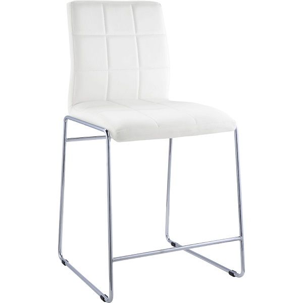 Counter height chairs are sold in a set of 2 with FREE shipping direct to you! The Gordie chair has a transitional design with a white finish and leatherete seating area.