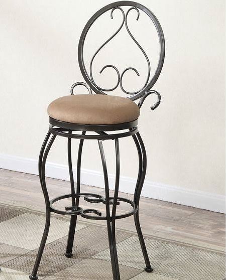 Bar height chair is sold in set of 2 with FREE shipping direct to you! The bar height chair has a transitional design with a fabric seating and black metal frame.