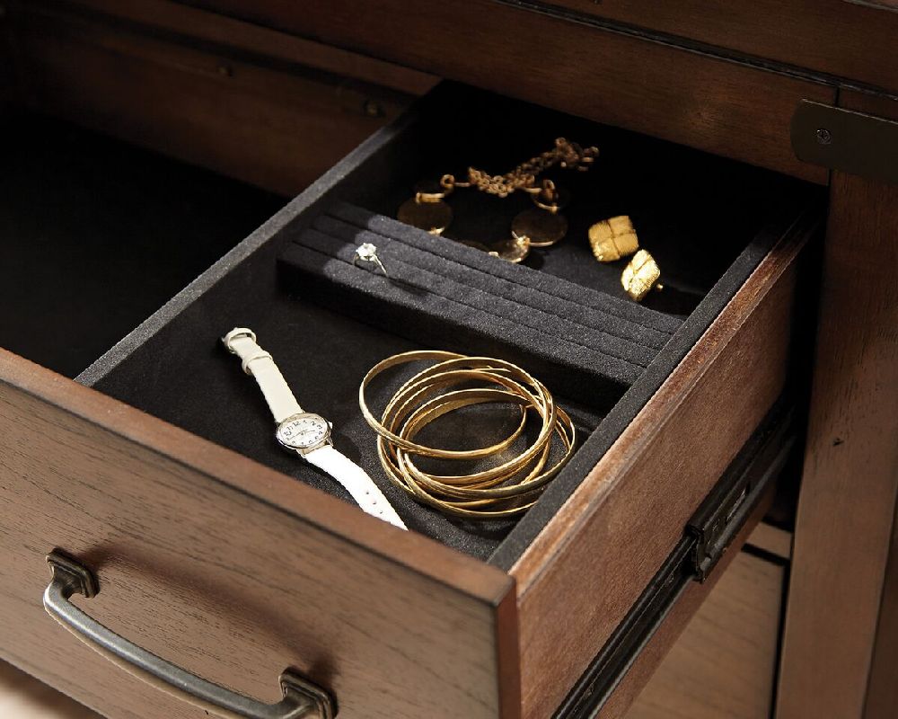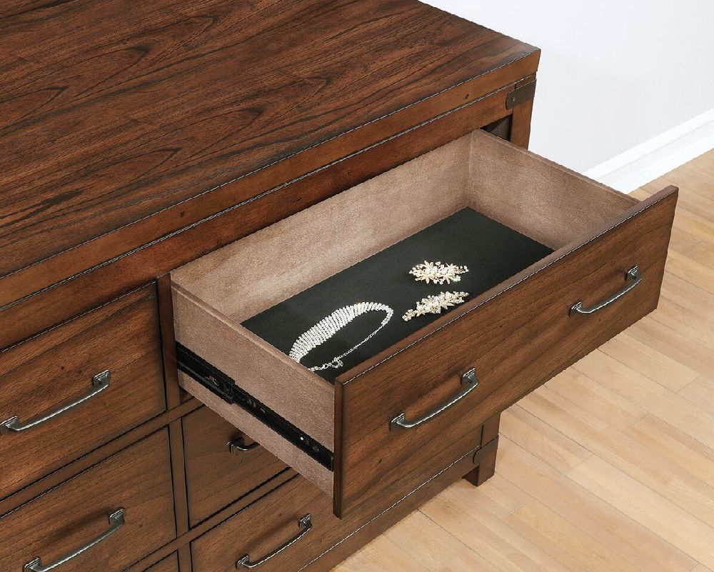 The Artesia Collection is brought to you by Scott Living it combines a transitional style with inspiration from vintage British Military. The dark cocoa finish combines with its many features will make your master bedroom a sight to be seen.
