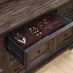 Solid wood with rich walnut finish in a rustic plack look design. 2 bulit in usb charges in every night stand on top of full extention english dovetailed drawers add convenience and quality. Jewelry tray in dresser for easy storage of your vaulables.