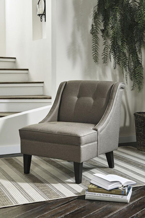 Free Shipping Direct to you!!! Covered in sleek, gray woven upholstery, the Calicho accent chair has a relaxed contemporary vibe. Sloped arms and tufted seating area elevate the look. Neutral color sets the scene for seasonal accent pillows.