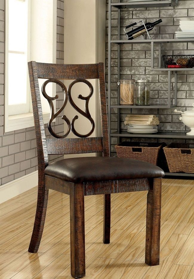 Dining chair is sold in a set of 2 with FREE shipping direct to you! The Paulina chair has a traditional rustic walnut finish and a padded leatherette seat cushion.