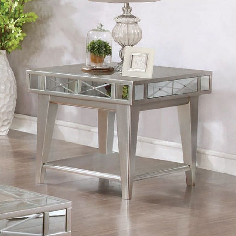 End table is sold individually with FREE shipping direct to you! This end table by Coaster is finished in mercury and has real mirrored pieces that have X's ecthed onto the surface.