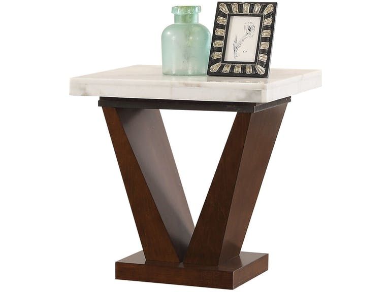 End table is sold individually with FREE shipping direct to you! The Forbes end table has a transitional design with white marble top and walnut finish.