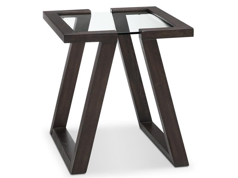 End table is sold individually with FREE shipping direct to you! The Visby end table has a contemporary design with an espresso finish and a glasstop.