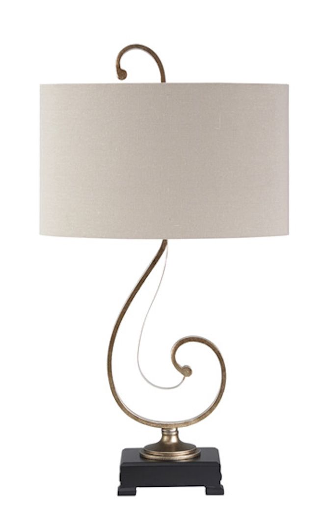 Shine a light on your quirky style. Tahir metal table lamp's curly cue base has an antiqued finish, adding just the right touch of sophistication. Antique Silver and Black Finished Metal Table Lamp. Oval Drum Shade. 3-Way Switch. Type A Bulb - 150 Watts Max or 25 Watts Max CFL.