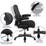 Big & Tall office chairs are designed to accommodate larger and taller body types. This chair has been tested to hold a capacity of up to 500 lbs., offering a broader seat and back width. High back office chairs have backs extending to the upper back for greater support. The high back design relieves tension in the lower back, preventing long term strain. The breathable mesh material allows air to circulate to keep you cool while sitting. The contoured backrest features a knob to adjust the firmness provided to your back. The contoured seat dissipates pressure points for greater comfort. The waterfall front seat edge removes pressure from the lower legs and improves circulation. Chair easily swivels 360 degrees to get the maximum use of your workspace without strain. The pneumatic adjustment lever will allow you to easily adjust the seat to your desired height. The flip-up arms are great for users who like the option of an armless chair without the hassle of detaching them. The heavy duty metal base is constructed to withstand daily use.