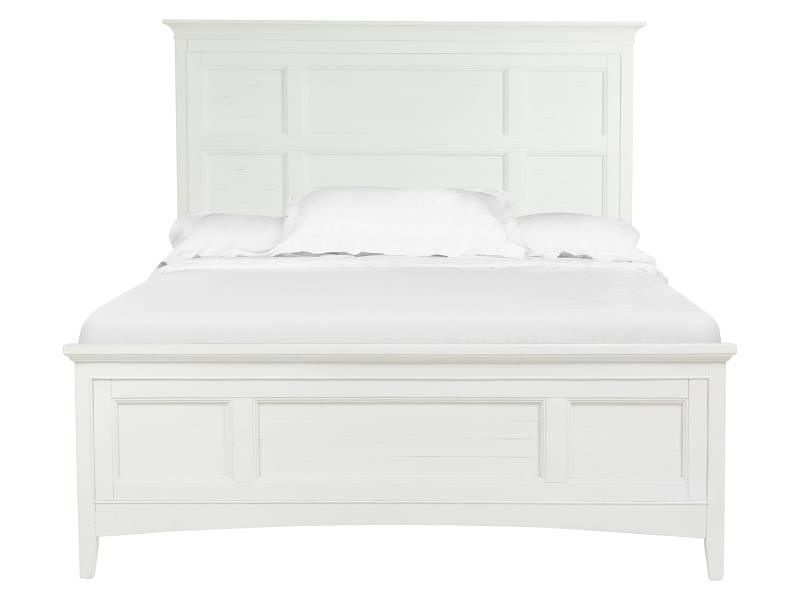 A soft Chalk White finish on Pine veneers and solids creates a relaxed beachy feel in any bedroom with Heron Cove. A high back beaded framed panel bed lends shaker appeal and is available with hidden rails storage. Straight legs support the straight lined chests with raised beaded trim for cottage appeal.