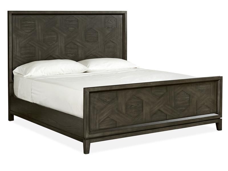 Proximity Heights bedroom lures with sophisticated and tailored Asian influences in a lush smoke Anthracite finish, offset with brushed white bronze hardware. Well executed clean lines echo Ming influences for sleek interest as open rectangular bases uniquely support the cabinets and chests.