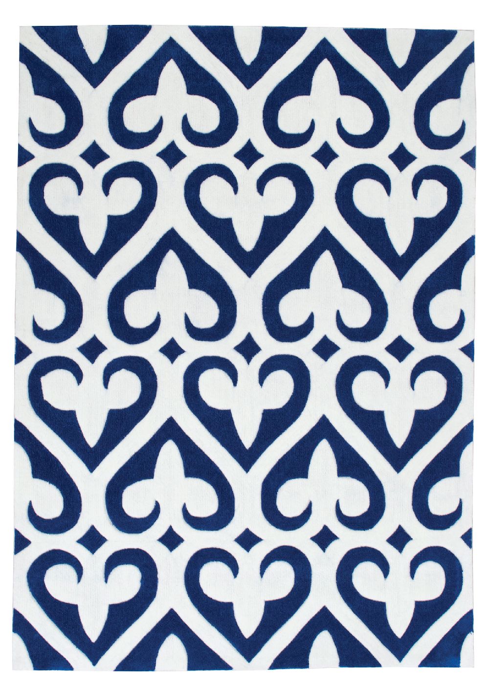 Power loomed diable polyester blue & white canvas back area rug. Extra dense pile for comfort and made in Turkey.