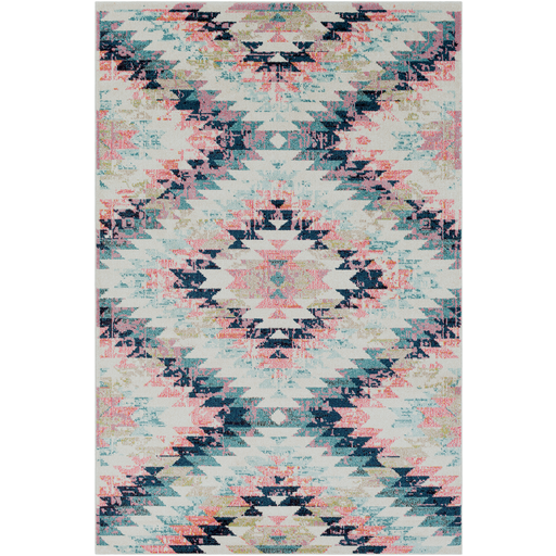 The rug is sold individually and ships free directly to you! The Anika rug is a white, aqua, bright pink, lime, beige, teal