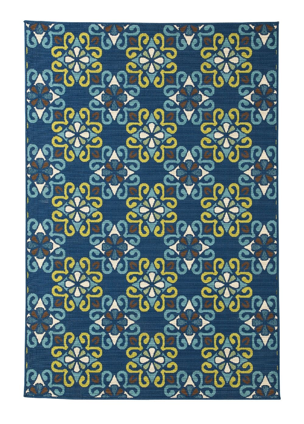 The Glerok rug sports a damask pattern that shines with the navy, teal and lime green colors. It is machine woven and made from one hundred percent Polypropylene.