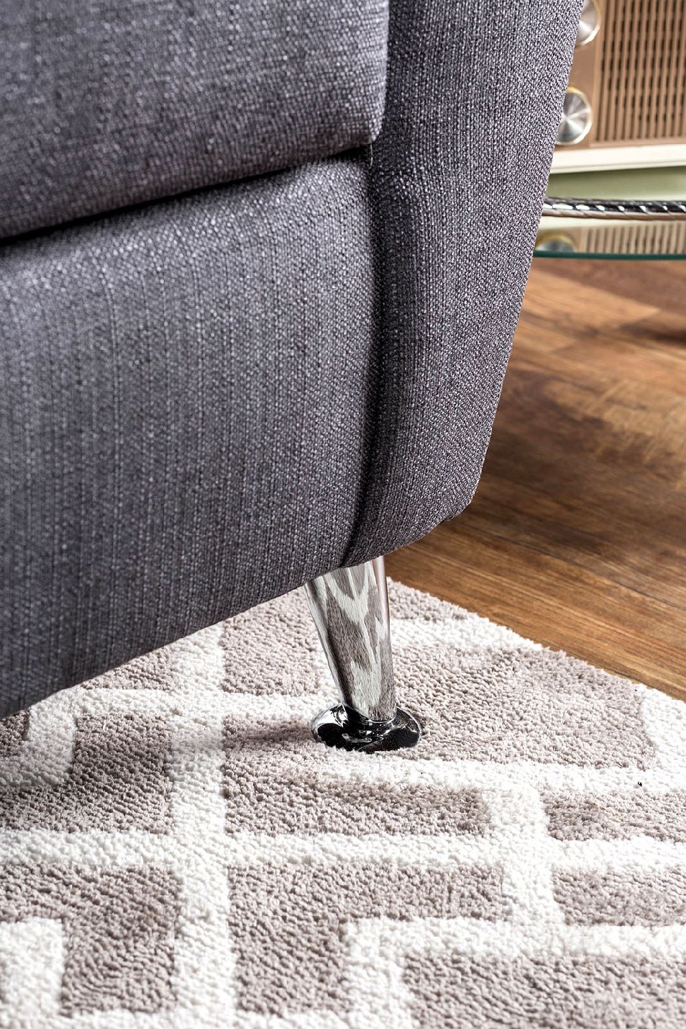 Hetland contemporary sleek sectional chaise. Loose back pillows with alternating colors, angled chrome legs create a wonderful dimension. Slanted gentle rounded armrest complement the contemporary styling of the sectional.