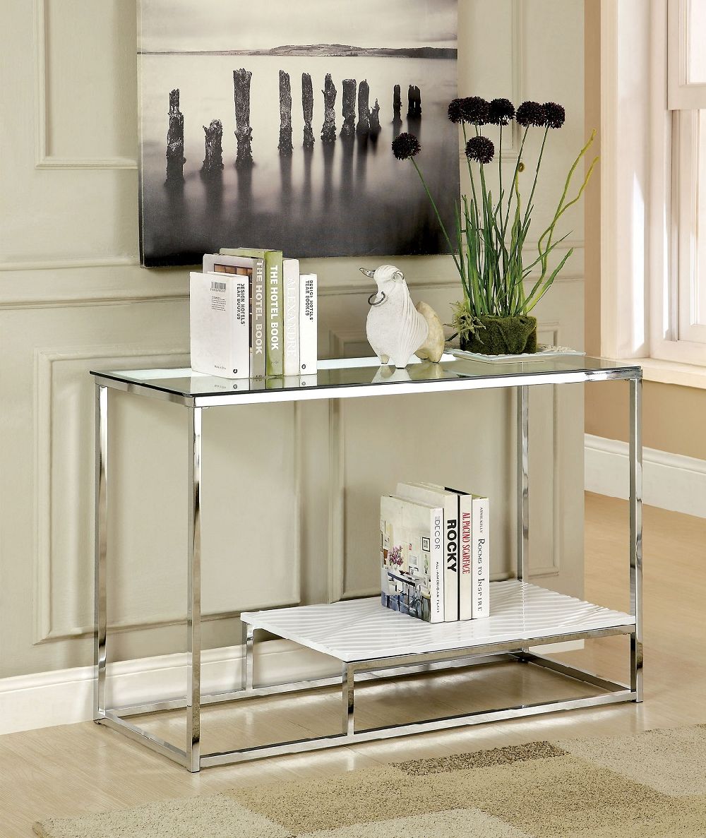 Coaster 704989 Chrome Finish with Tempered Glass Sofa Table -
