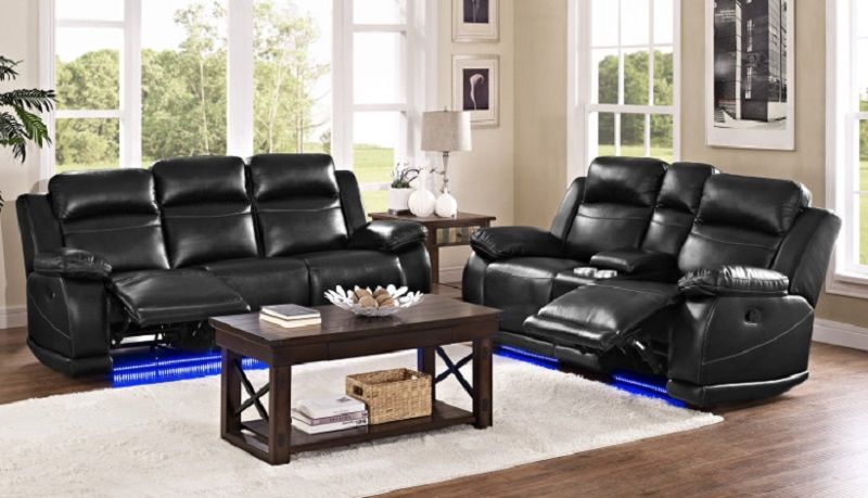 Feel the ease of sitting sown and reclining with this power motion sofa set. The straight black coloring and lighted bases will modernize your room and give it a nice clean finish.
