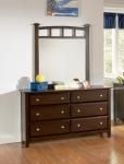 The paned details on the headboard and footboard with option of under bed storage showcase a transitional design with some arts and crafts detail. Felt lined top drawers in case goods to protect valuables. Unique beveled drawer fronts, finished in cappuccino.